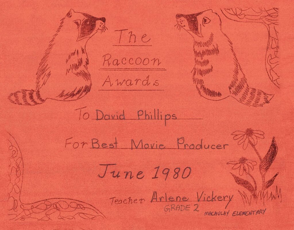 In 1978, at six years old, I made my first stop-motion movie using Lego, Hot Wheels, and my sister’s snow boot. My dad helped me bring his Bell & Howell projector to my Grade 2 class to screen my three-minute masterpiece. My teacher, Mrs. Godfrey, gave me a “Best Director” award.
